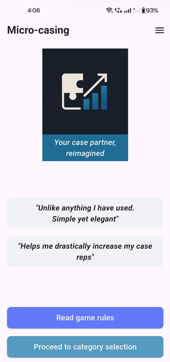 Micro-casing is een gratis onderwijsapp gebouwd voor mensen die zich voorbereiden op consulting interviews bij bedrijven zoals McKinsey, BCG en Bain, evenals MBA-studenten en professionals in strategie of financiën. Het richt zich op het helpen van jou om je probleemoplossend vermogen en gestructureerd denken vaardigheden op een praktische manier te versterken.